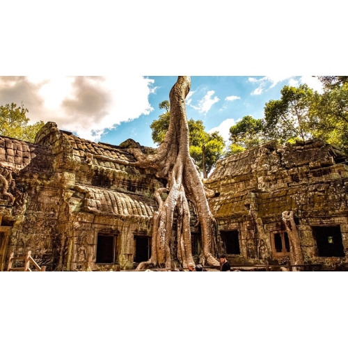 This excursion may prove distressing for some. After that, transfer to the airport for the short flight to Siem Reap. Upon arrival in Siem Reap, you will visit the incredible temple Ta Prohm. There are enormous fig trees and gigantic creepers which embrace themselves in the stone foundations of the structure giving the impression of man's creation being reclaimed by the powerful forces of nature.
