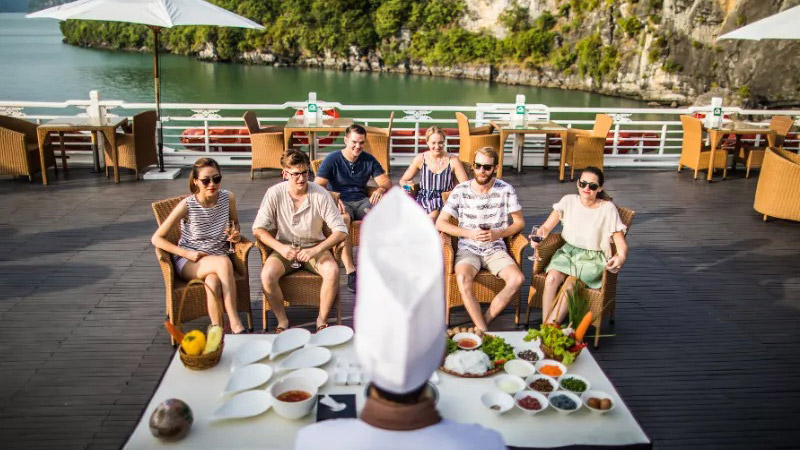 Taste our most exquisite drinks varied vastly in the selection while enjoying the scenic panorama view of Halong Bay with the "Happy Hour" promotion.
