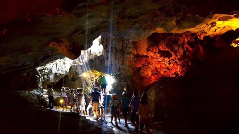 Visit Thien Canh Son Cave, a wonder of two chambers cave adorned with striking stalactites and stalagmites. Conquer nearly 200 stone steps, then stroll along the white-sand beach and take in the breathtaking views of Bai Tu Long Bay.