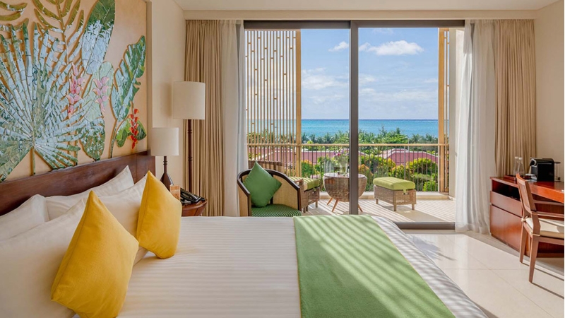 Perched on the upper floors, this room offers sweeping ocean views from a private balcony. Contemporary comforts are enhanced by tropical accents, with thoughtful details such as handcrafted ceramics and premium TWG tea to enjoy while soaking in the coastal scenery.