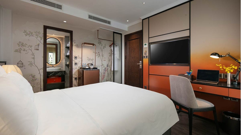 The Chi Boutique Hotel features 58 elegantly designed rooms and suites, combining warm wooden interiors with modern comforts. Each room is thoughtfully appointed with air-conditioning, high-speed Wi-Fi, a flat-screen TV, and carefully selected furnishings to ensure a relaxing stay in the heart of Hanoi’s Old Quarter.