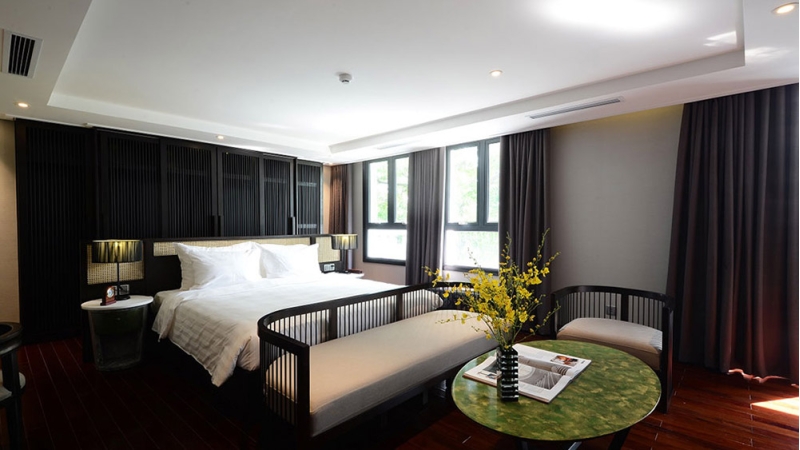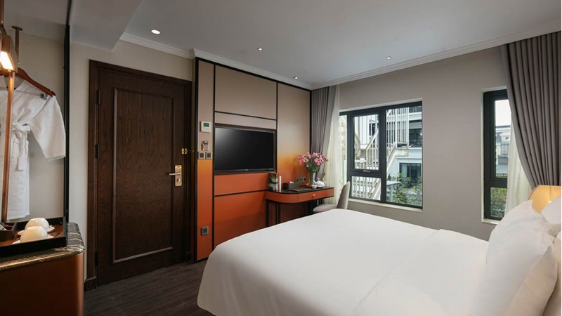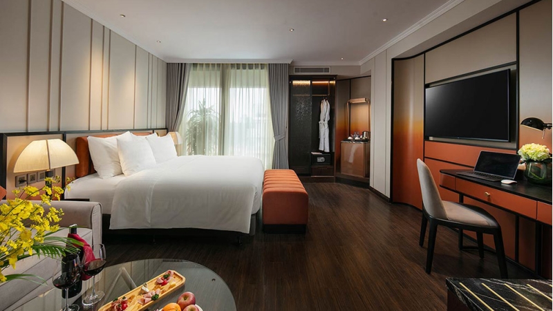 Just a short stroll from Hoan Kiem Lake and key cultural landmarks, the hotel offers modern, air-conditioned accommodations with complimentary Wi-Fi. Each room is designed with warm tones and elegant wooden flooring, complete with a flat-screen TV and a fully stocked minibar. Select rooms include a private balcony, while all bathrooms are equipped with modern shower facilities for a comfortable and relaxing stay.