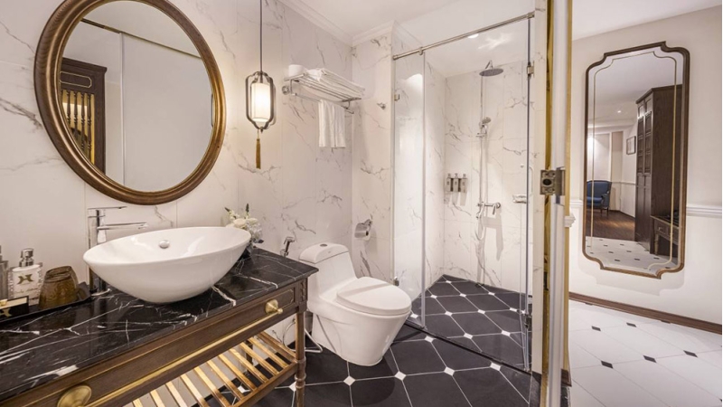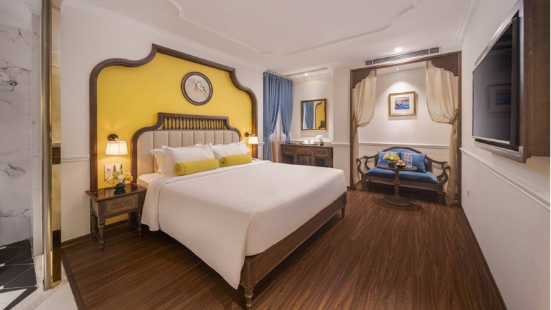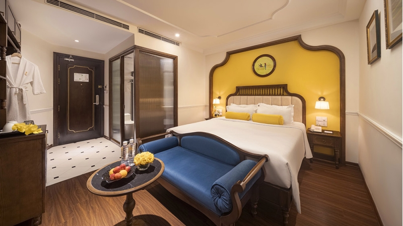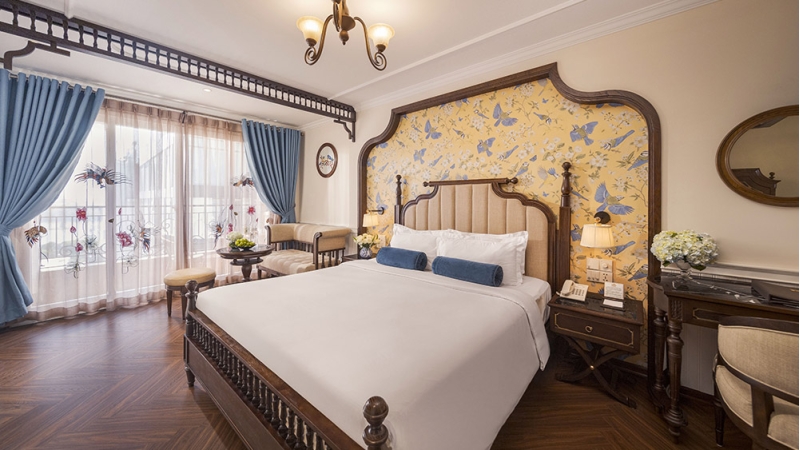 The Executive Balcony Room offers extra space and a private balcony overlooking the lively streets of Hanoi’s Old Quarter. Guests can enjoy the vibrant city atmosphere while relaxing in a well-appointed room featuring a flat-screen TV, tea and coffee-making facilities, and a private bathroom with shower. This room is ideal for travelers who enjoy outdoor space and city views.
